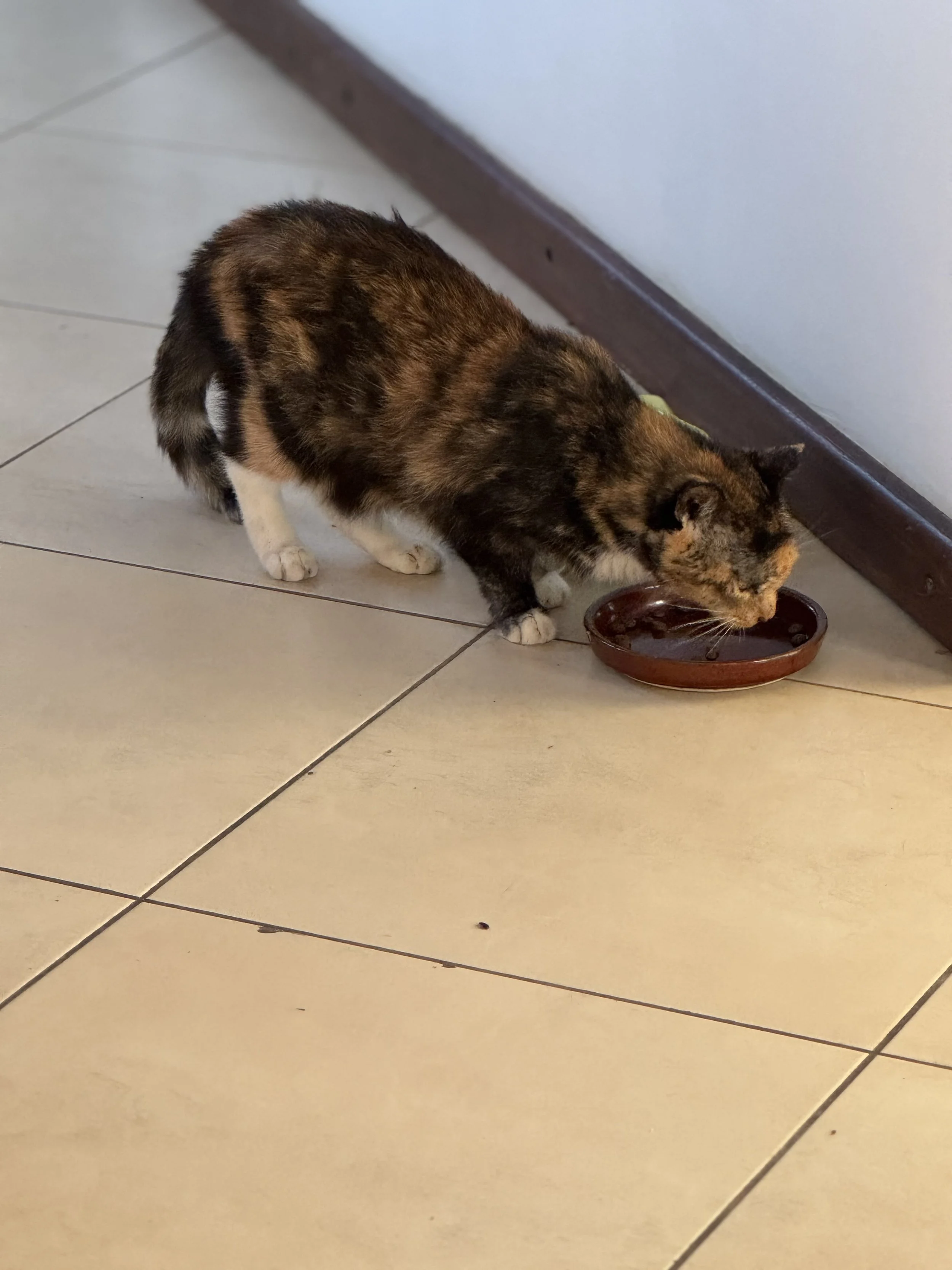 Eventueel poep opruimen en/of kattenbak schoonmaken.